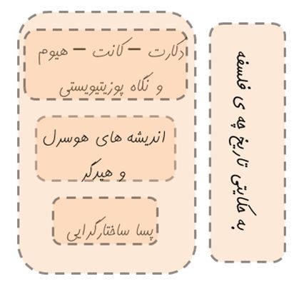 از آن جایی که فکر می کنم معرفی بالا تا حد زیادی به مقدمه ی بسیاری از کتابهای معماری و ... شبیه شده تا معرفی کتابی خوب به دوستان و هم دانشکده ای هایم سعی کردم در ادامه بیشتر روی فصل اول در معرفی فلسفه ی پدیدارشناسانه در مقابل فلسفه ی دکارتی و ... بپردازم. تاریخ فلسفه را می توان به طور کلی و با اغماض به سه بخش تقسیم کرد : (البته قبل از هر چیز باید بگم این دسته بندی صرفا بابت روشن شدن مطلب به این صورت آمده خلاصه این که ما هیچ ادعایی در این وادی نداریم! بلکه صرفا چون این دسته بندی به خود من کمک کرد در این جا مطالب را سعی کردم در این قالب بریزم ضمن این که در جای جای کتاب هم به مقایسه ی دیدگاه دکارتی و پدیدارشناسانه پرداخته شده)